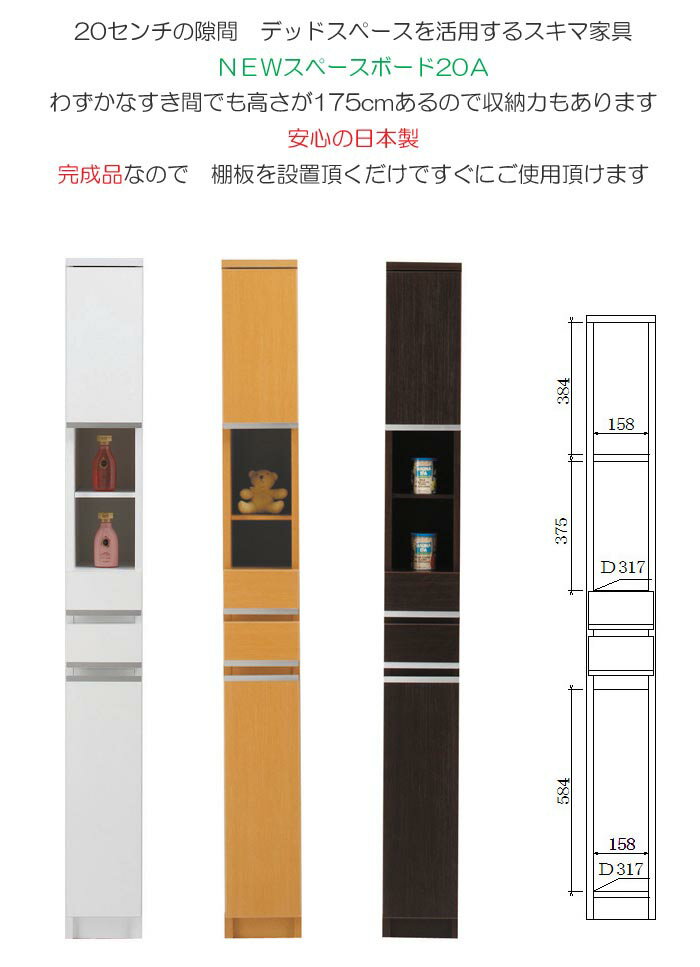 商品 NEWスペースボード 20A 商品説明 20センチの隙間、デッドスペースを活用するスキマ家具「NEWスペースボード20A」。