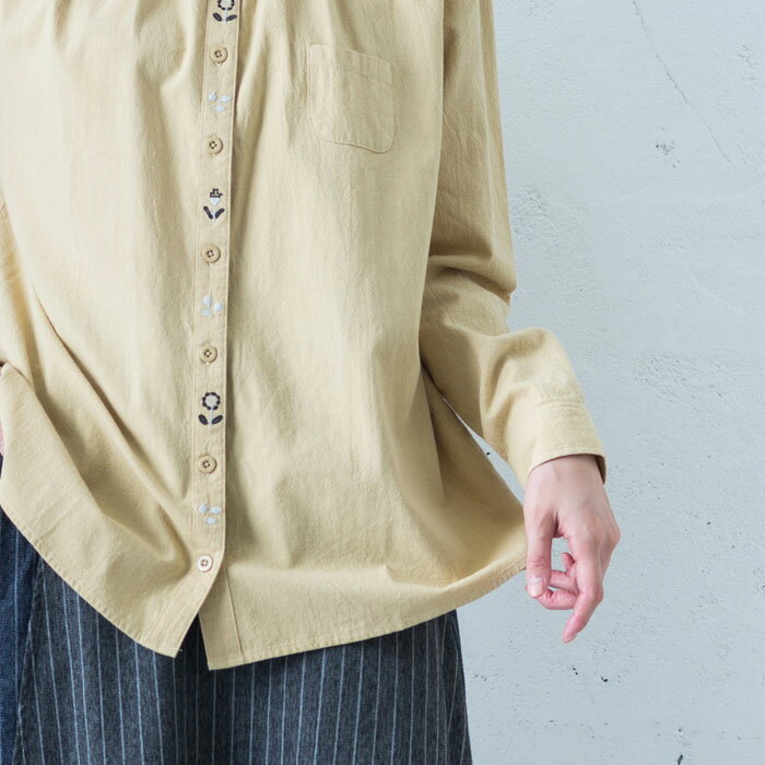 【前立て刺繍シャツチュニック】 北欧花柄刺繍をした人気のシャツチュニックです。